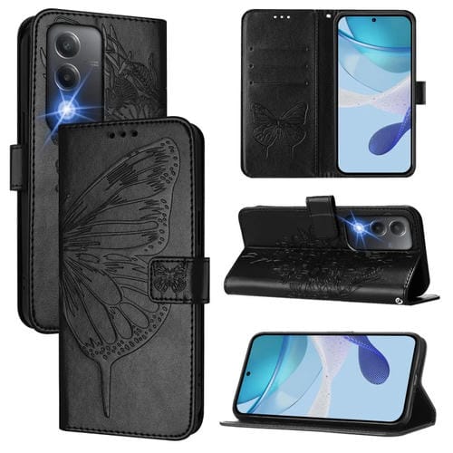 Funda de Piel con Diseño de Mariposa En Relieve para Oppo A80 5G (Ue) (Negra)