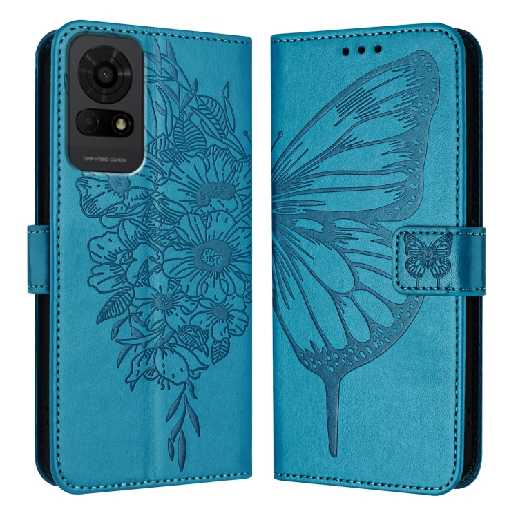 Funda de Cuero para TCL 50 Le 5G con Diseño de Mariposa en Relieve (Azul)