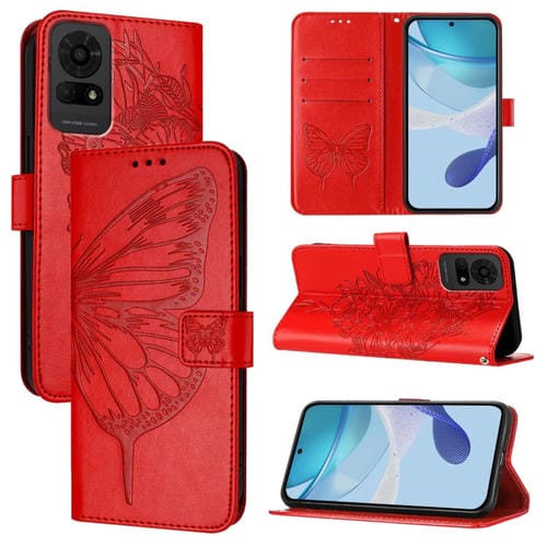 Funda de Cuero para TCL 50 Le 5G con Diseño de Mariposa en Relieve (Rojo)