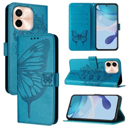 Funda de Cuero con Diseño de Mariposa En Relieve para Vivo Y28 4G (Azul)
