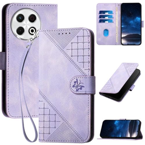 Funda de Cuero para Tecno Spark 30 Pro 4G con Diseño de Mariposa y Cordón (Morado Claro)