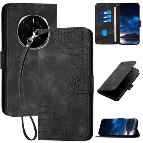 Funda de Cuero para Honor Magic7 con Diseño de Mariposas en Relieve y Cordón (Negro)