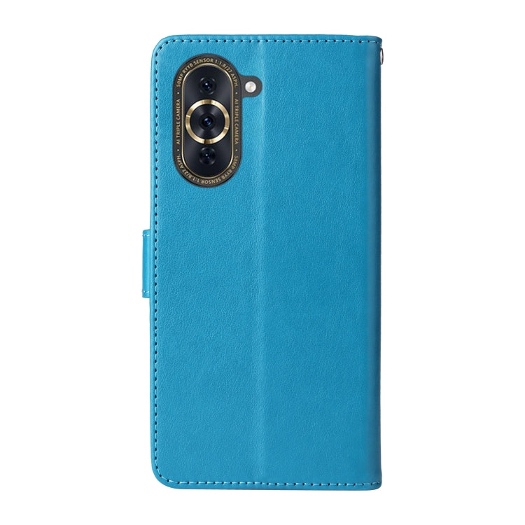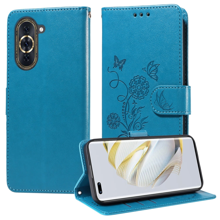 Funda de Cuero para Huawei Nova 10 Pro con Diseño de Mariposas y Flores en Relieve (Azul)
