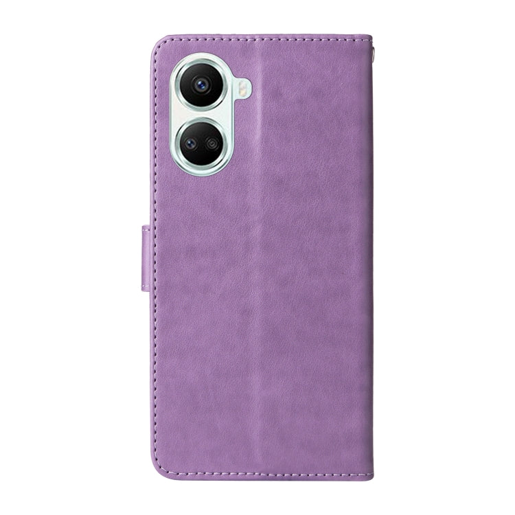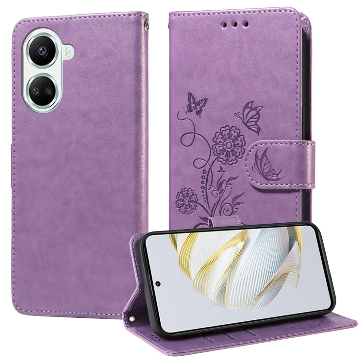 Funda de Cuero para Huawei Nova 10 Se con Diseño de Mariposas y Flores en Relieve (Morado)