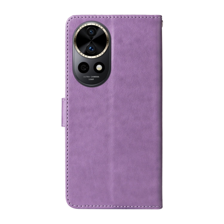 Funda de Cuero para Huawei Nova 12 con Diseño de Mariposas y Flores en Relieve (Morado)