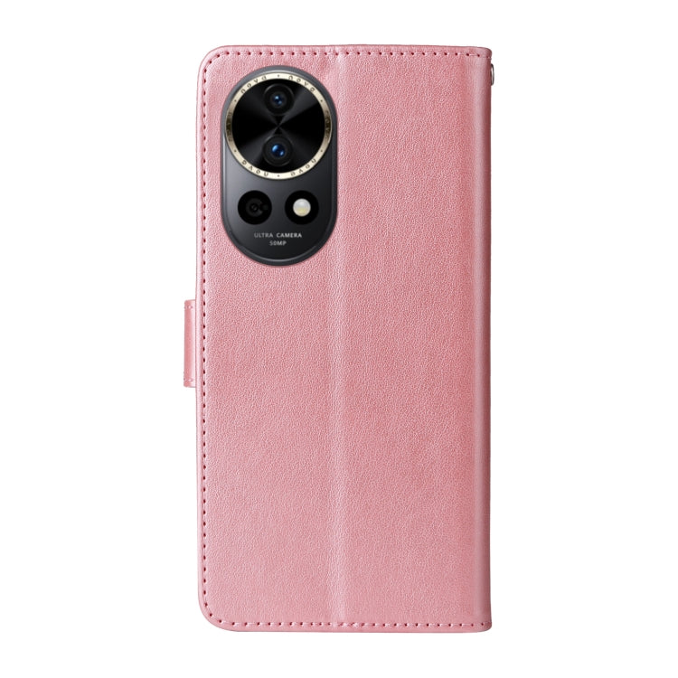 Funda de Cuero Huawei Nova 12 con Diseño de Mariposas y Flores en Relieve (Oro Rosa)