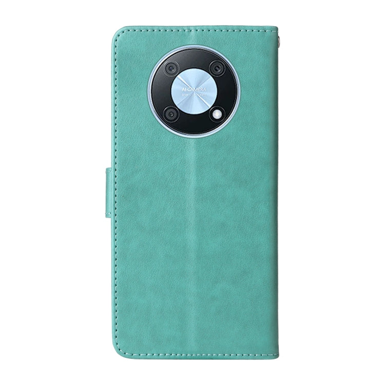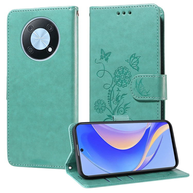 Funda de Cuero para Huawei Nova Y90 con Diseño de Mariposas y Flores en Relieve (Verde)