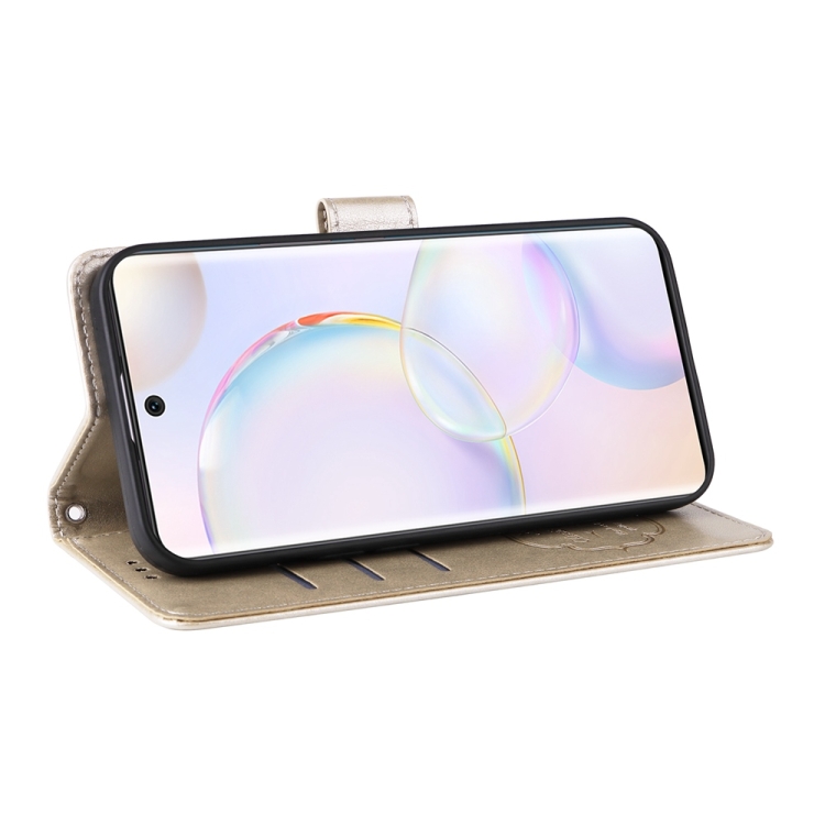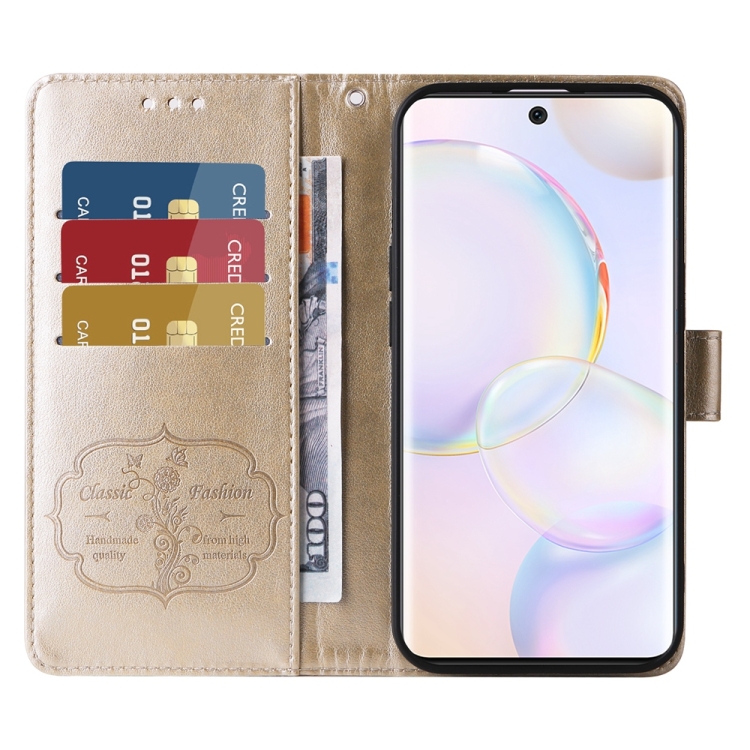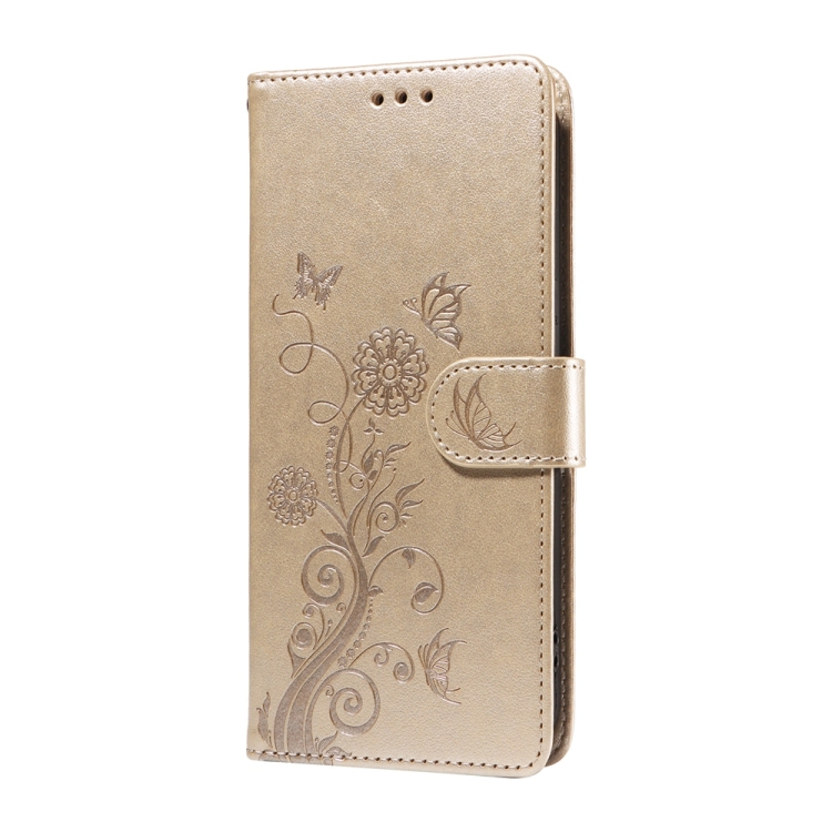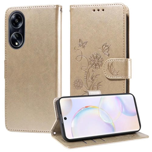Funda de Cuero con Diseño de Mariposas y Flores En Relieve para Oppo A1/A98/F23 5G (Dorada)