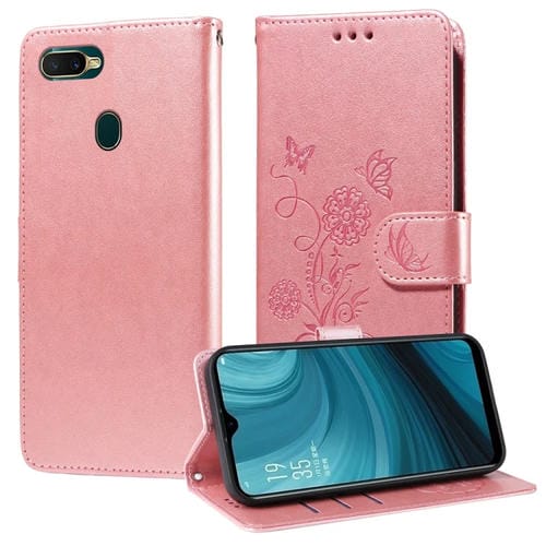 Funda de Cuero con Diseño de Mariposas y Flores En Relieve para Oppo A12/A12S/A11K (Oro Rosa)