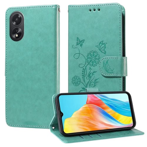 Funda de Cuero con Diseño de Mariposas y Flores En Relieve para Oppo A38 4G Global/A18 4G (Verde)