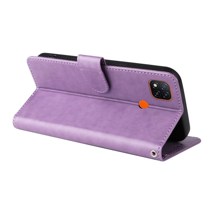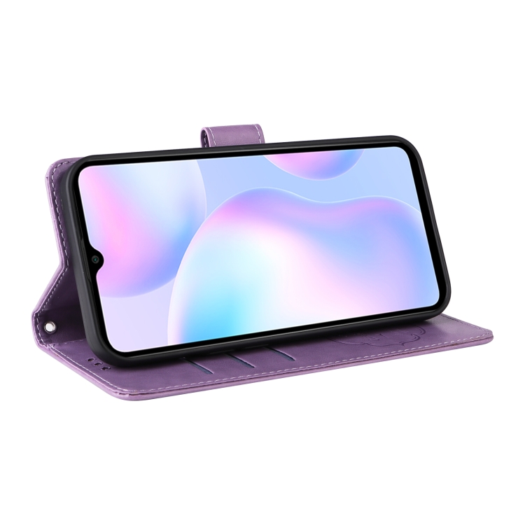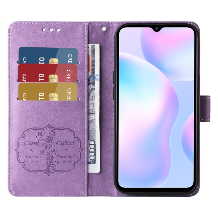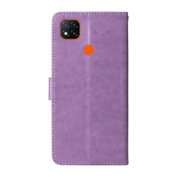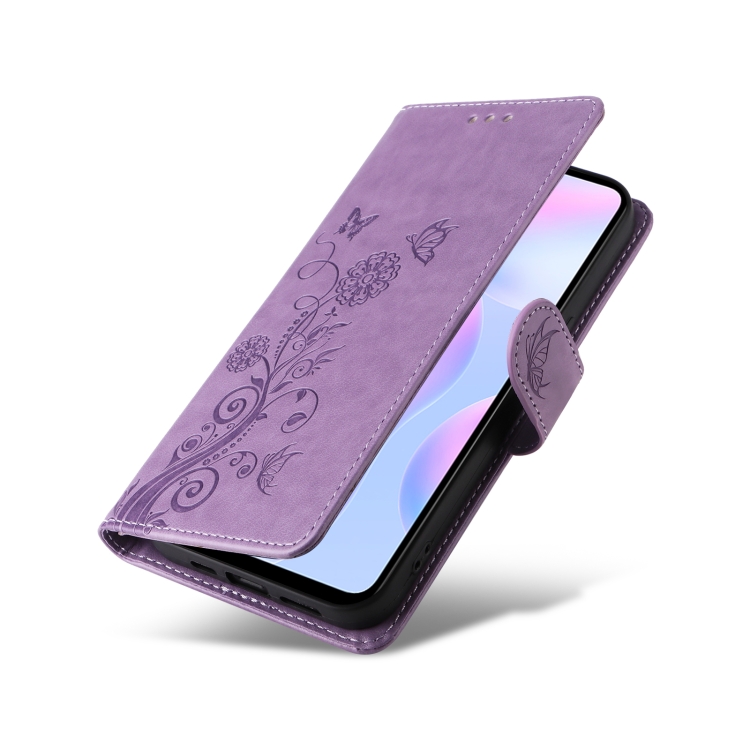Funda de Cuero con Diseño de Mariposas y Flores En Relieve para Redmi 10A 4G (Morado)