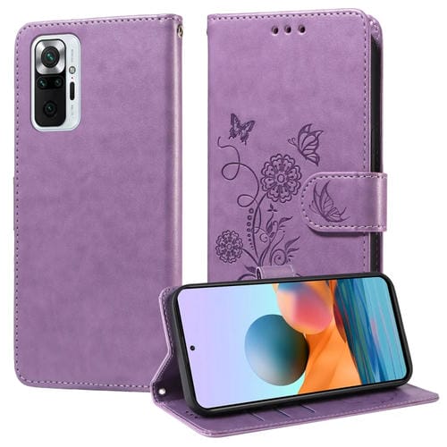 Funda de Cuero con Diseño de Mariposas y Flores En Relieve para Redmi Note 10 Pro 4G/Note 10 Pro Max (Morado)