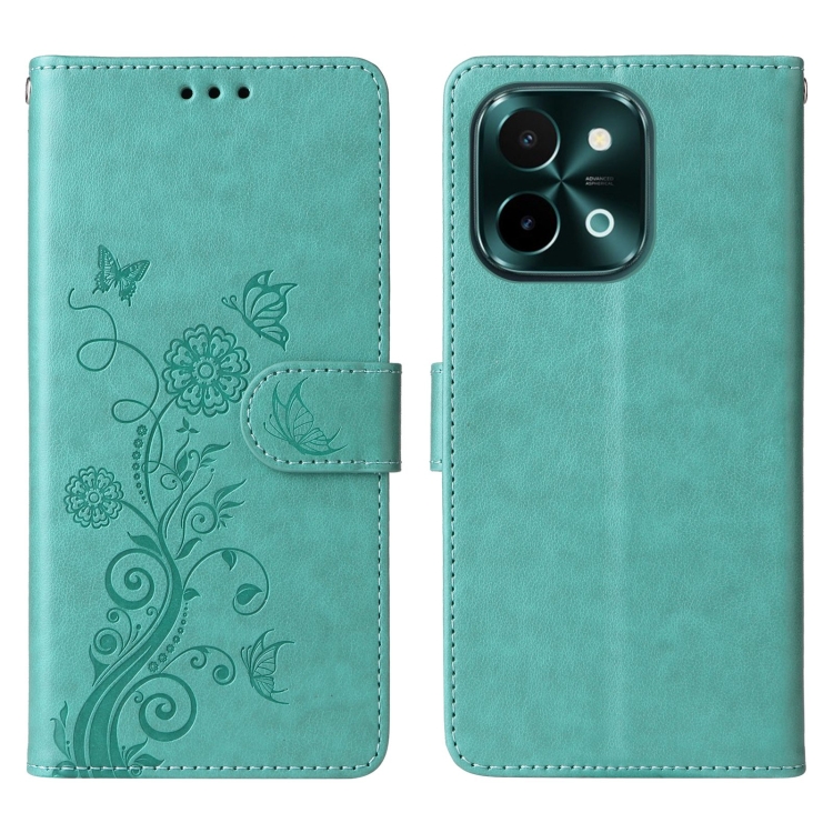 Funda de Cuero con Diseño de Mariposas y Flores En Relieve para Vivo Y28 4G (Verde)