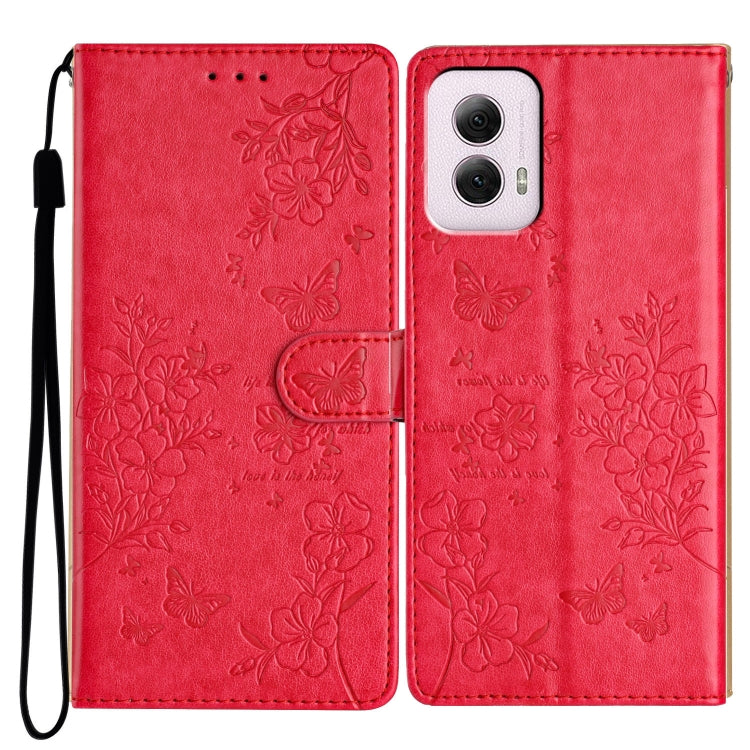 Funda de Cuero para Motorola Moto G Power 5G con Diseño de Mariposas y Flores (Rojo)