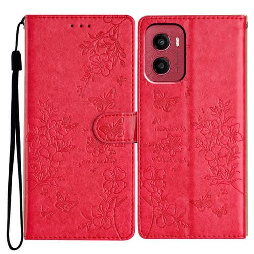 Funda de Cuero con Diseño de Mariposas y Flores para Motorola Moto G05 (Roja)