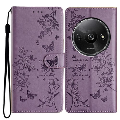 Funda de Cuero con Mariposas y Flores para Redmi A3 (Morado)