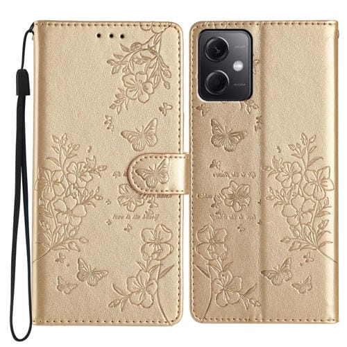 Funda de Cuero con Diseño de Mariposas y Flores para Redmi Note 12 5G (Dorada)