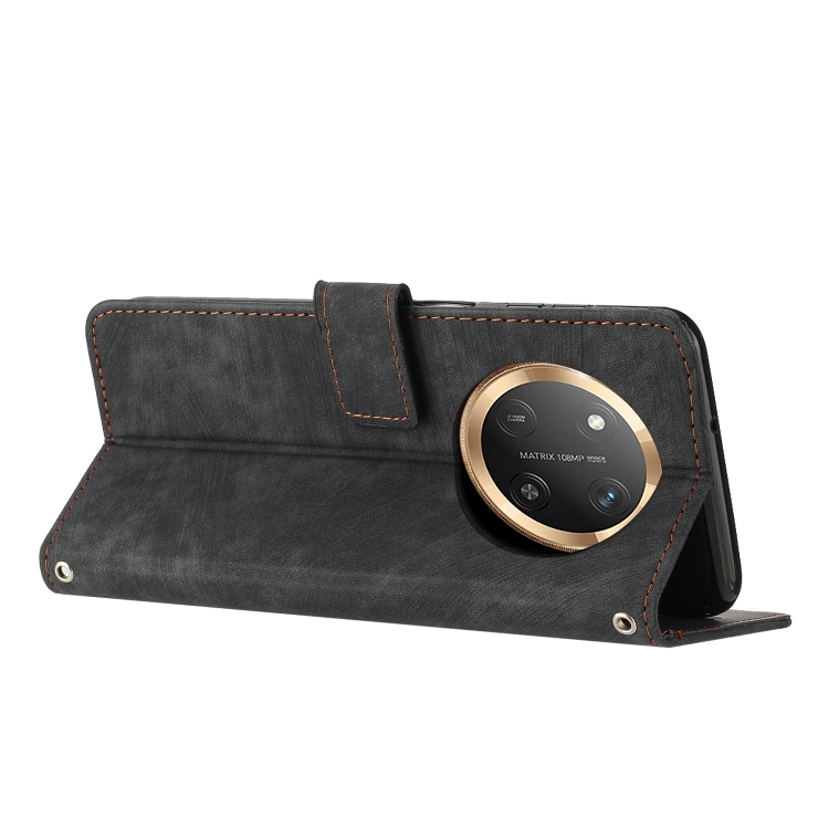 Funda de Cuero para Honor X9C/X60 Pro con Diseño de Rayas y Tacto Agradable (Negro)