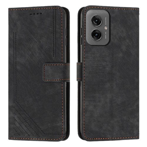 Funda de Cuero Motorola Moto G55 con Diseño de Rayas y Tacto Agradable (Negro)