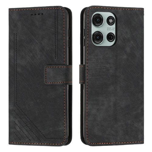 Funda de Cuero Motorola Moto G75 con Diseño de Rayas y Tacto Agradable (Negro)