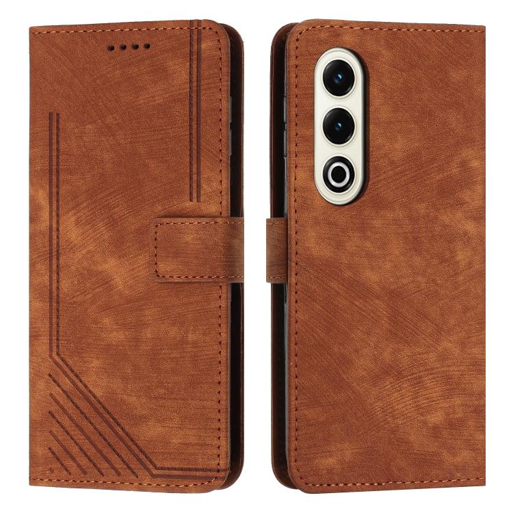 Funda de Cuero Itel S25 con Diseño de Rayas y Cordón (Marrón)