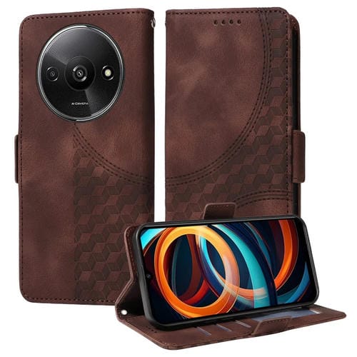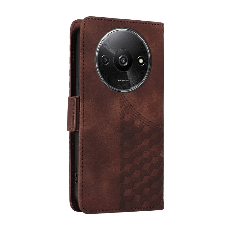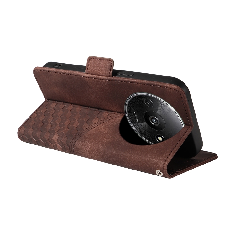 Funda de Cuero con Diseño de Rombos y Estrellas En Relieve para Xiaomi Poco C61 (Marrón)