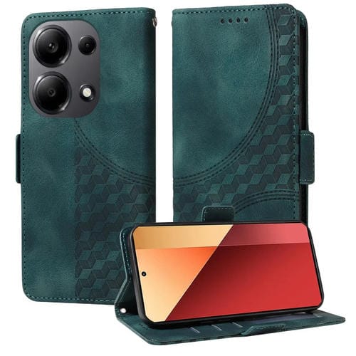 Funda de Cuero con Diseño de Rombos y Estrellas En Relieve para Xiaomi Poco M6 Pro 4G (Verde)