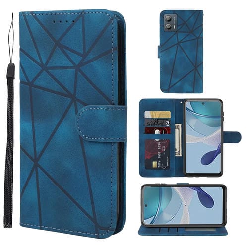 Funda de Cuero para Motorola Moto G53 con Diseño Geométrico y Líneas (Azul)