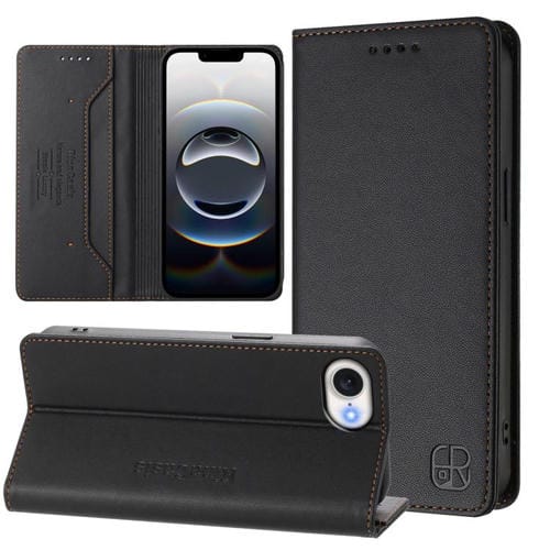 Funda de Cuero para iPhone Se 2024 Rc01 con Doble Pliegue y Succión Magnética (Negra)