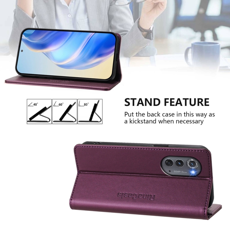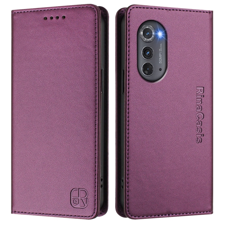 Funda de Cuero con Doble Pliegue y Succión Magnética para Motorola Edge 2022 / Edge 5G Uw 2022 Rc01 (Violeta)