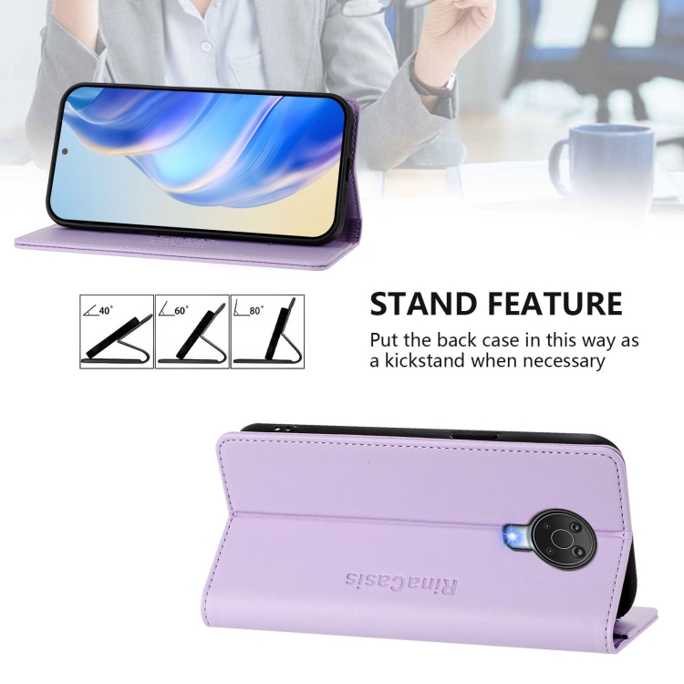 Funda de Cuero con Doble Pliegue y Succión Magnética para Nokia 6.3/G20/G10 Rc01 (Morado Claro)