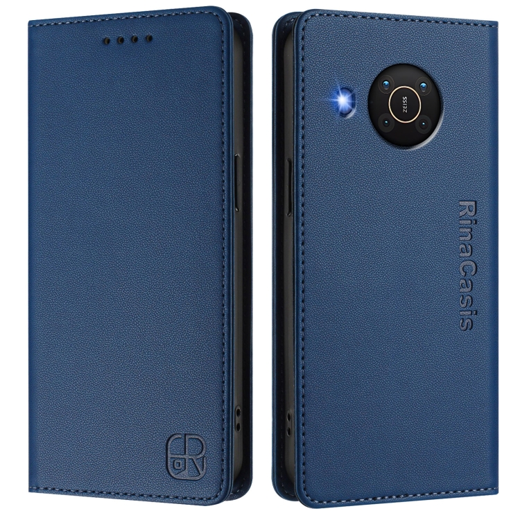 Funda de Cuero con Doble Pliegue y Succión Magnética para Nokia X20/X10 Rc01 (Azul Oscuro)