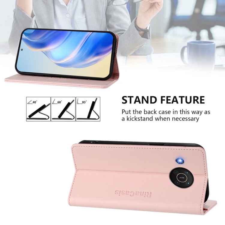 Funda de Cuero con Doble Pliegue y Succión Magnética para Nokia X20/X10 Rc01 (Rosa)