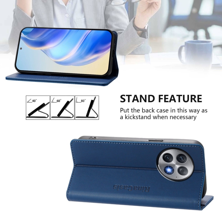 Funda de Cuero con Doble Pliegue y Succión Magnética para OnePlus Ace 2 Pro Rc01 (Azul Oscuro)