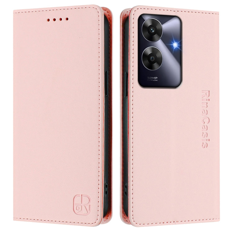 Funda de Cuero con Doble Pliegue y Succión Magnética para Realme Note 60 4G/C61 4G India Rc01 (Rosa)