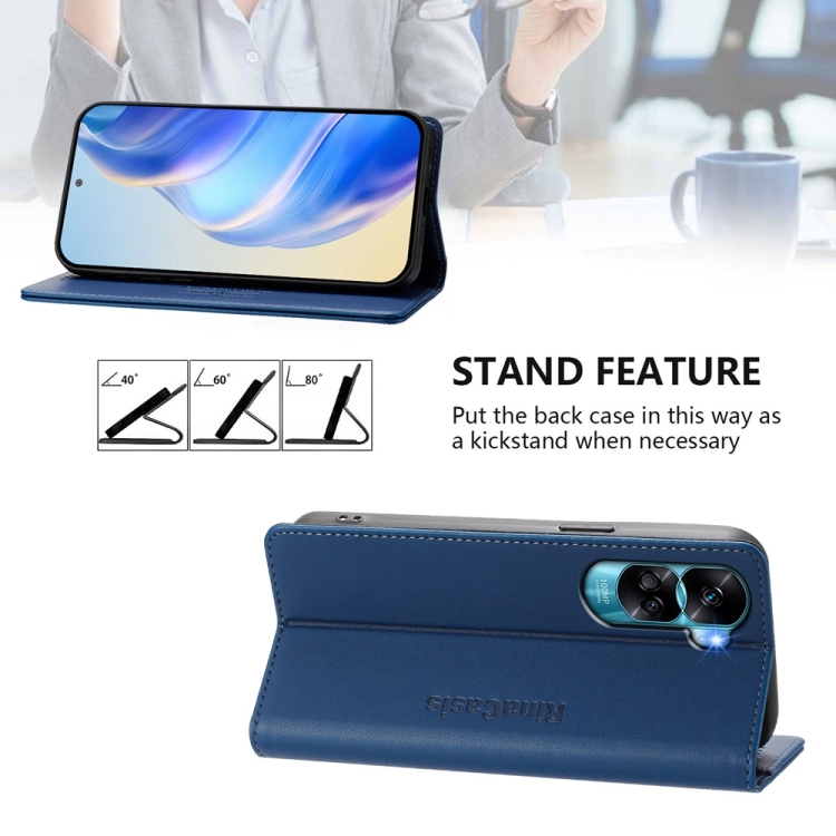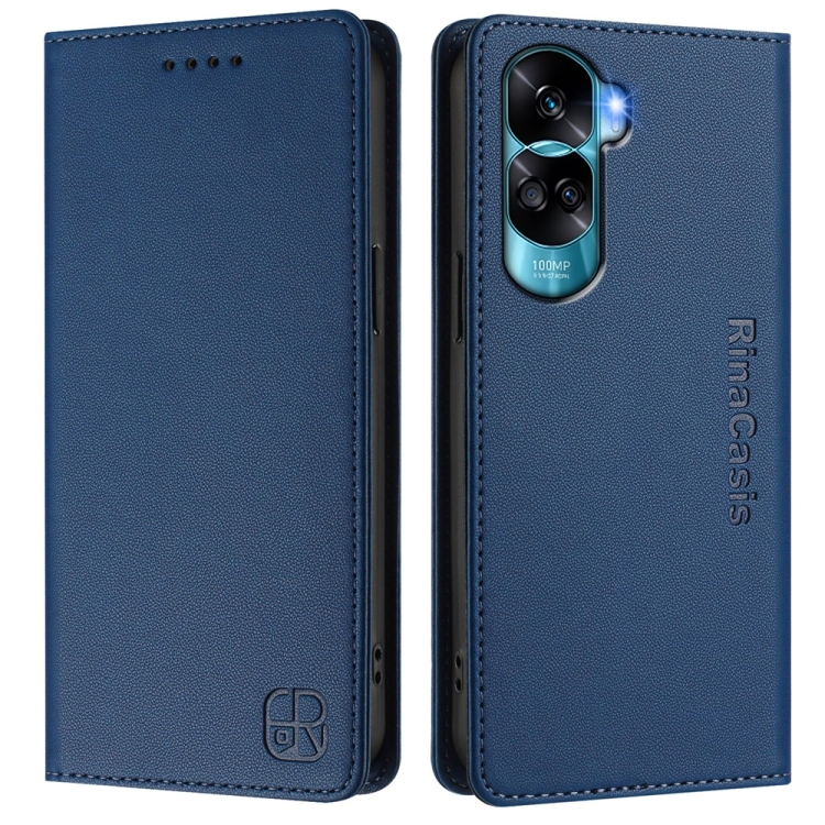 Funda de Cuero con Doble Pliegue y Succión Magnética Rfid para Honor 90 Lite / Honor X50I Rc01 (Azul Oscuro)