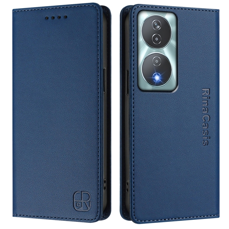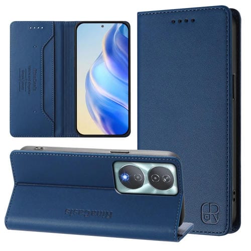 Funda de Cuero con Doble Pliegue y Succión Magnética Rfid para Honor 90 Smart / X7B 5G / 4G Global Rc01 (Azul Oscuro)