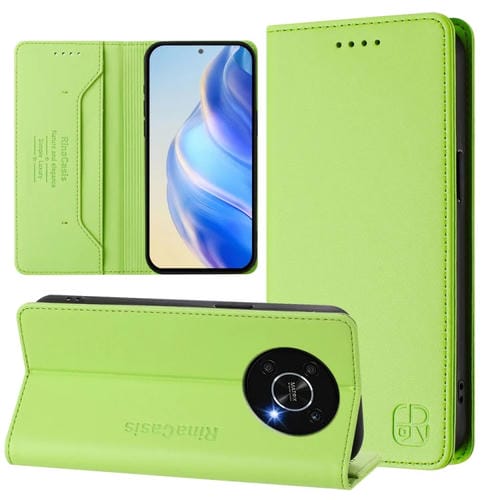 Funda de Cuero con Doble Pliegue y Succión Magnética Rfid para Honor X9 4G 5G y X30 5G Rc01 (Verde Hierba)