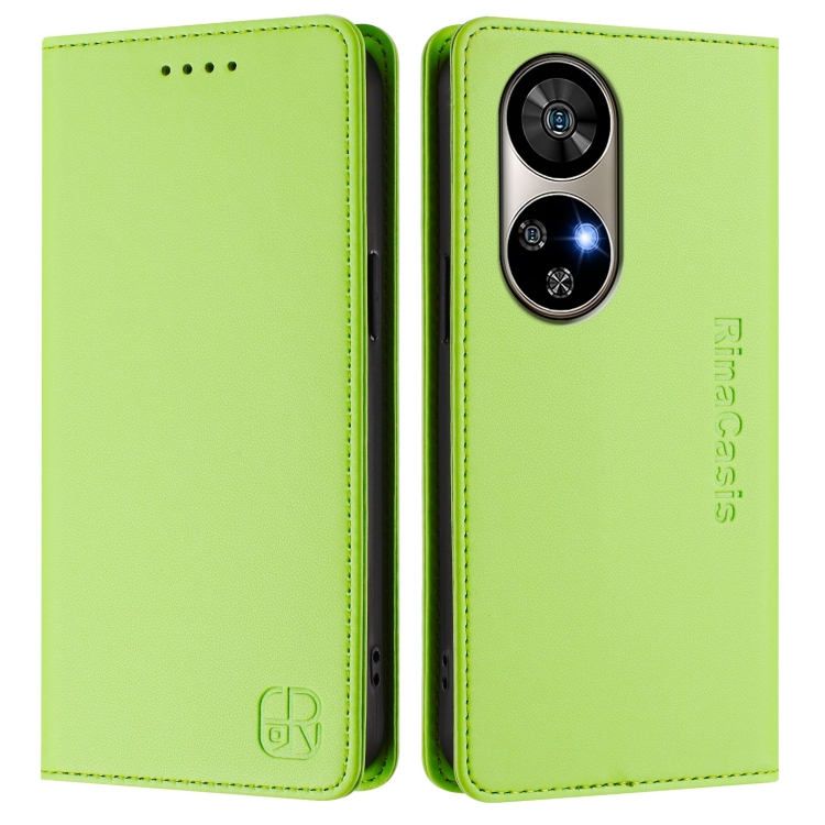 Funda de Cuero para Ulefone Note 17 Pro Rc01 con Doble Pliegue y Succión Magnética (Verde Hierba)