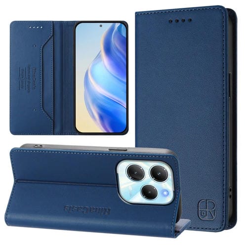 Funda de Cuero con Doble Pliegue y Succión Magnética Rfid para Infinix Hot 40 4G / Hot 40 Play Rc01 (Azul Oscuro)
