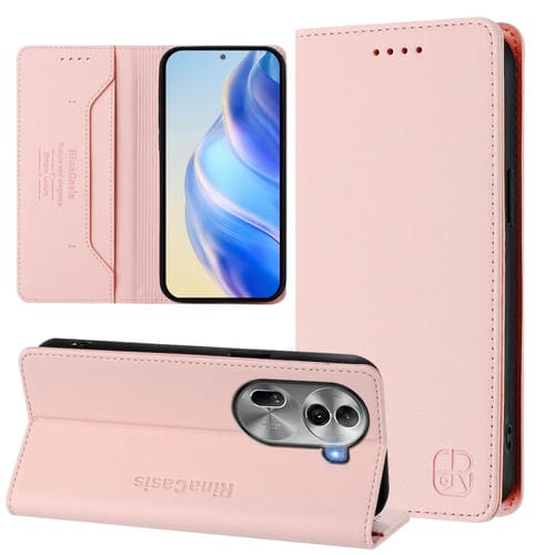 Funda de Cuero con Doble Pliegue y Succión Magnética Rfid para Oppo Reno11 Pro 5G Global Rc01 (Rosa)