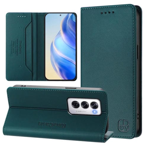 Funda de Cuero con Doble Pliegue y Succión Magnética Rfid para Oppo Reno12 5G Global Rc01 (Verde Oscuro)