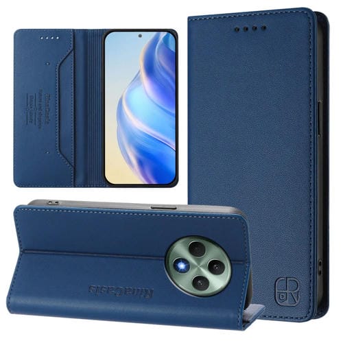 Funda de Cuero con Doble Pliegue y Succión Magnética Rfid para Oppo Reno12 F 5G / 4G Global Rc01 (Azul Oscuro)