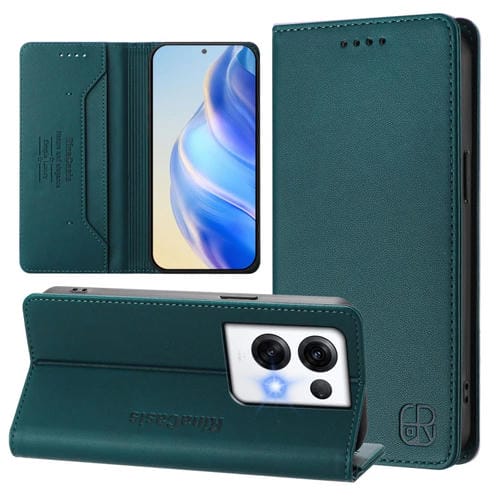 Funda de Cuero con Doble Pliegue y Succión Magnética Rfid para Oppo Reno8 Pro 5G Global Rc01 (Verde Oscuro)
