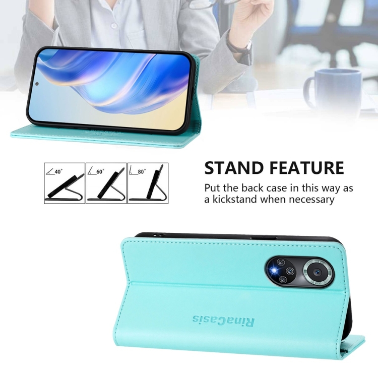 Funda de Cuero Honor 50 Pro Rc01 con Doble Pliegue y Succión Magnética Rfid (Verde Menta)