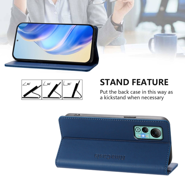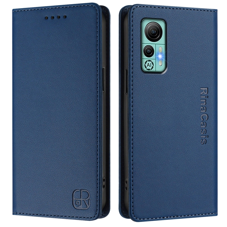 Funda de Cuero Ulefone Note 14 Rc01 con Doble Pliegue y Succión Magnética Rfid (Azul Oscuro)