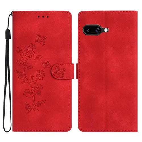 Funda de Cuero Google Pixel 9A Estampado Flores y Mariposas (Rojo)
