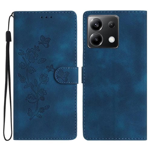 Funda de Cuero con Estampado de Flores y Mariposas para Xiaomi Poco X6 (Azul)