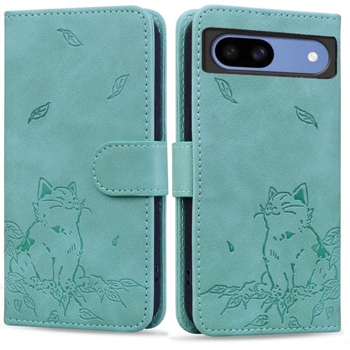 Funda de Cuero para Google Pixel 8A con Estampado de Gato (Verde)