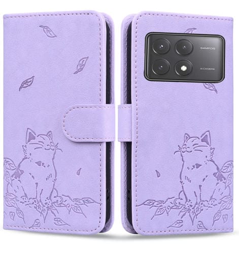 Funda de Cuero con Estampado de Gato para Xiaomi Poco X6 5G (Morado)